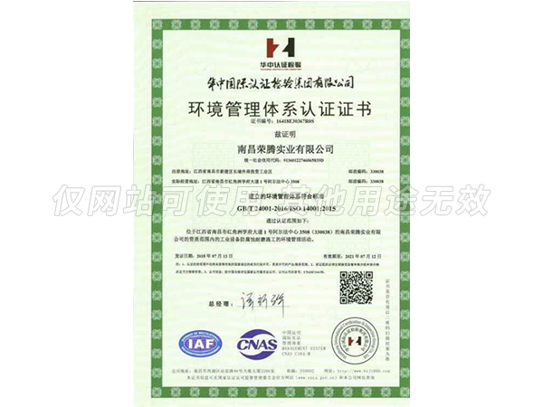 環(huán)境管理體系認(rèn)證證書